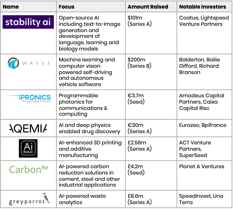 You can also get a sense of the range of promising AI businesses by looking at notable recent funding rounds. We’ve collected a small selection of these rounds here, along with the business’s focus and major investors: